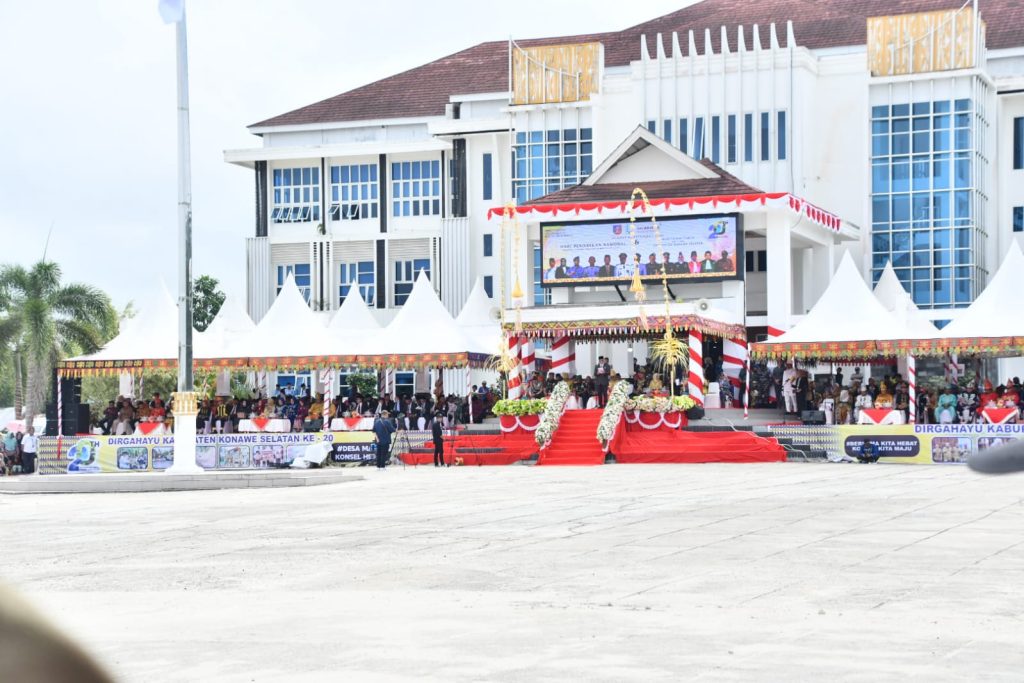 Upacara peringatan HUT ke – 20 Kabupaten. Konawe Selatan (Konsel) dirangkaikan dengan peringatan hari Pendidikan Nasional yang dimpimpin langsung oleh Sekretaris Daerah (Sekda) Drs Asrun Lio M.hum., Phd dan dihadiri oleh Bupati dan wakil Bupati Kab.Konawe Selatan, seluruh unsur pejabat Se-Kab.Konsel, TNI-POLRI dan Siswa-siswi Sekolah di Kab.Konawe Selatan