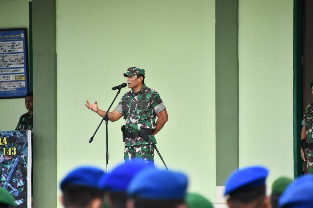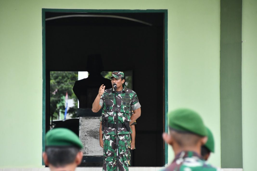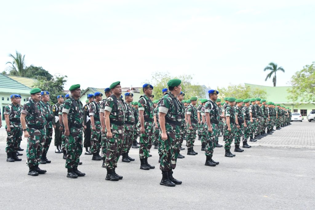 Kendari – Komandan Korem 143/HO Brigjen TNI Ayub Akbar memimpin apel siaga dalam rangka mengecek personel yang telah selesai melaksanakan cuti dan berikan beberapa penekanan.