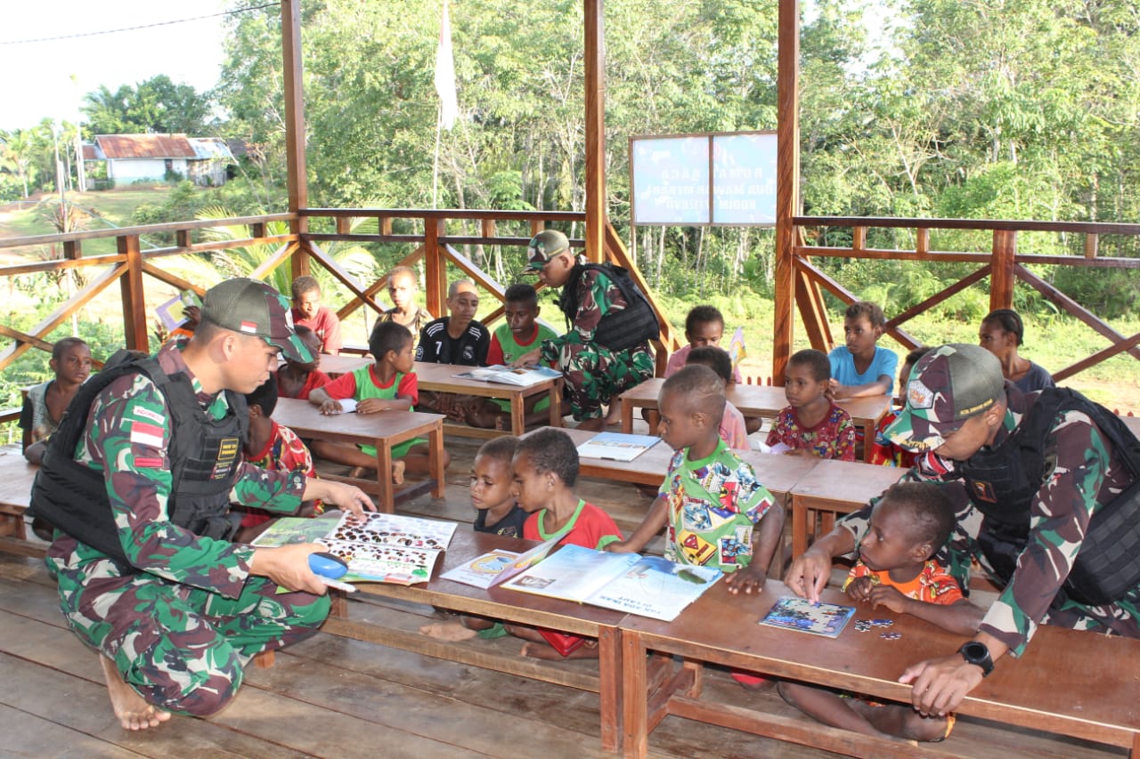 Satgas Pamtas Yonif 725/Wrg yang dibawah naungan Korem 174/Atw Pos Kombut, meluncurkan inisiatif yang luar biasa dengan memberikan materi pelajaran kepada anak-anak perbatasan di Rumah Belajar Kampung Kombut Upaya ini bertujuan untuk membantu meningkatkan akses pendidikan bagi anak-anak di kawasan perbatasan, Kampung Kombut, Distrik Kombut, Kab. Boven Digoel.