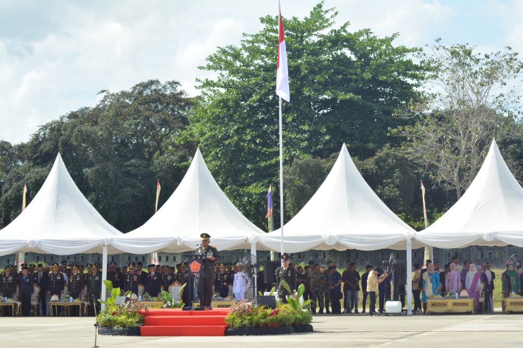 Dalam amanatnya Panglima TNI yang dibacakan oleh Danrem 143/HO menyampaikan bahwa Prajurit TNI sebagai pilar Pertahanan Negara memiliki peran dan tanggung jawab dalam menjaga kedaulatan dan keutuhan wilayah NKRI, serta mendukung percepatan program pembangunan nasional dan ketahanan negara dalam mewujudkan Indonesia Maju.